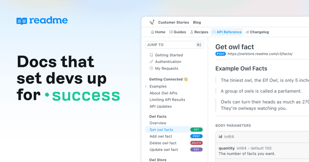 ReadMe helps API-first companies create polished developer docs, portals, changelogs, and onboarding experiences.